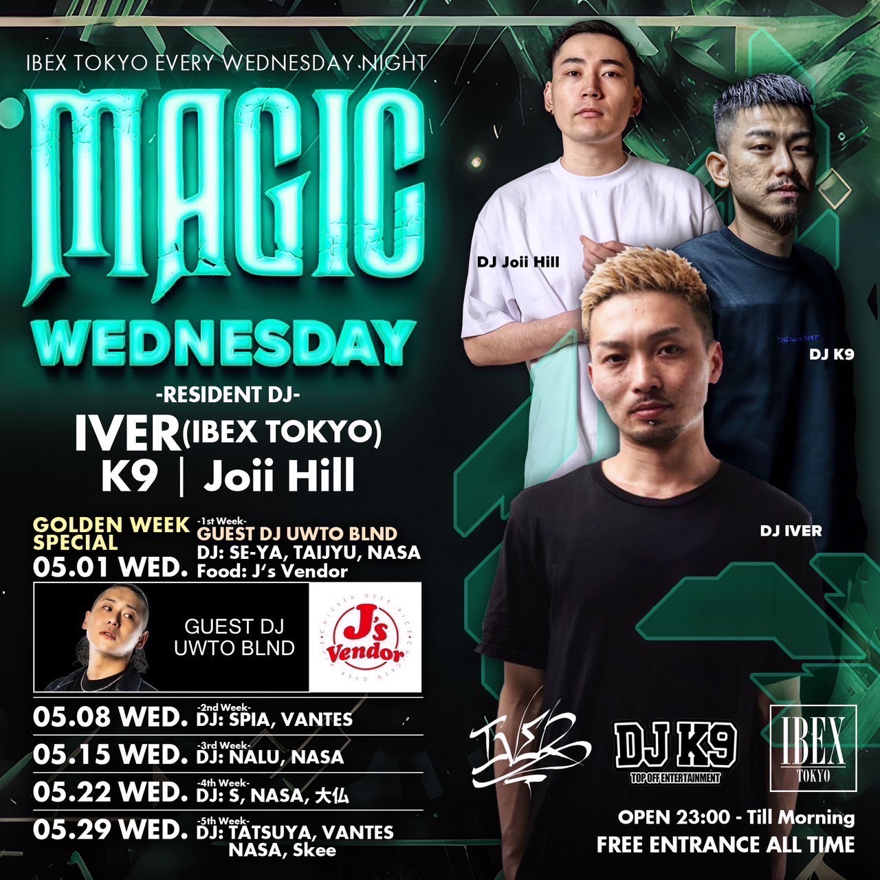 IBEX TOKYO Every Wednesday Night 「MAGIC WEDNESDAY」 -RESIDENT DJ- IVER(IBEX TOKYO) K9 Joii Hill - DJ - DJ: SPIA, VANTES OPEN 23:00 - Till Morning FREE ENTRANCE ALL TIME