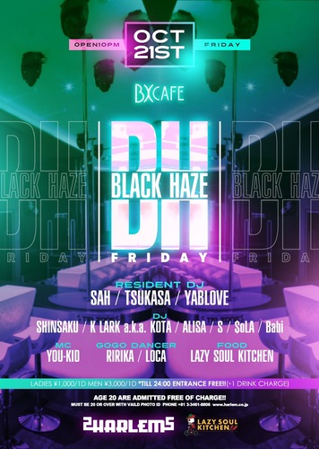 BX CAFE BLACK HAZE FRIDAY RESIDENT DJ: SAH, TSUKASA, YABLOVE